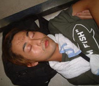 のである!!で、その後、なだれるようにつまずき、手を挙げながら、ホームに倒れふして「ああ〜!!」