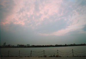 淀川で2時間ほど暮れゆく空をみながら弁当を食べて