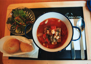 コーヒーはサイフォンコーヒー。器はオーナーの玉井さんの手作り。