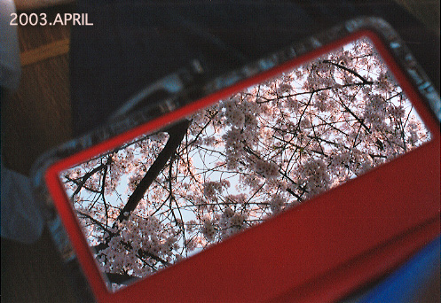化粧ポーチを開けたら鏡にサクラが映りこんだ。