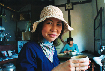 お店の人に木の椅子をお借りしたいと正直に申請。