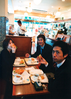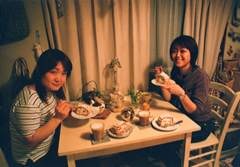自分たちの褒美として、撮影で使ったケーキでお茶をする。