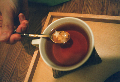 ティーはハーブティーのシナモンアップルティーをたしなむ。