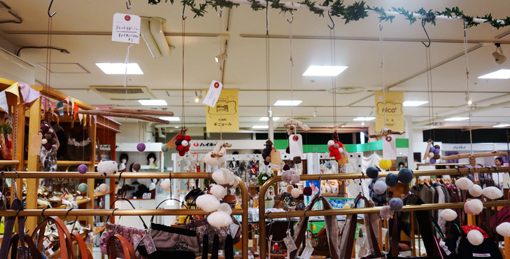 手編み・フェルト・布物雑貨のコーナー。