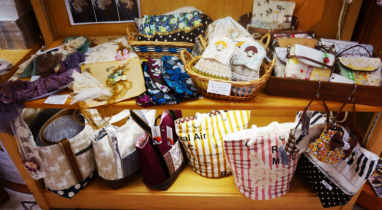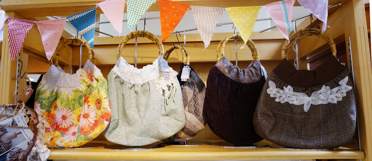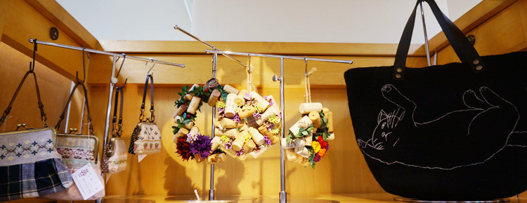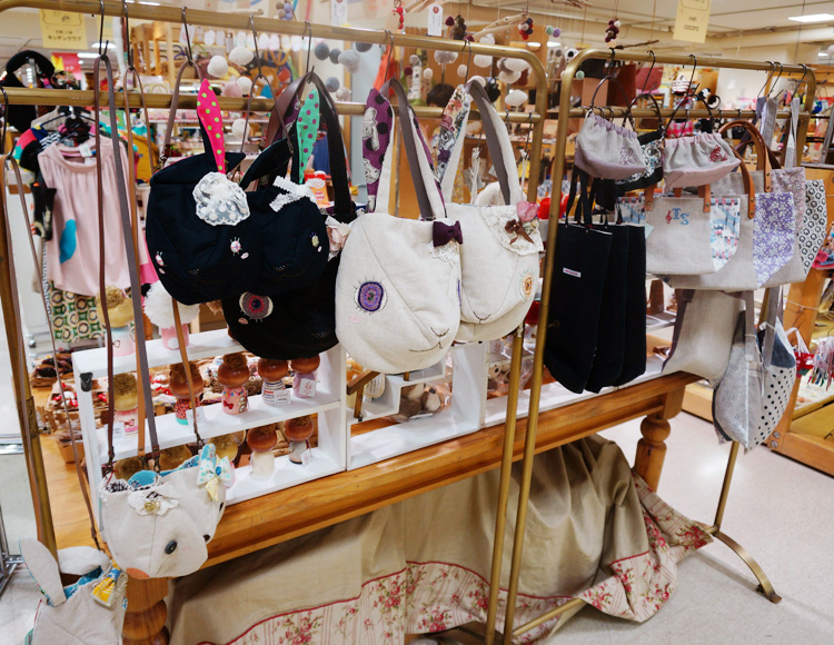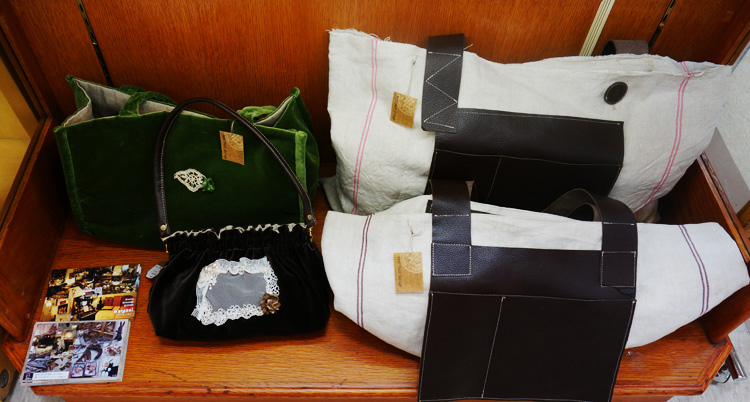 バッグと布物雑貨のコーナー。