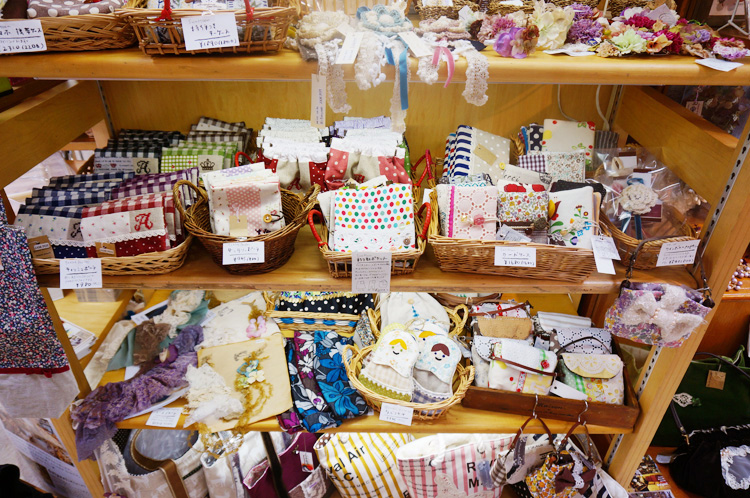 手編みやフェルトのアクセサリーや、ポーチ・スマーロフォンケースなどの布物雑貨もたくさん。