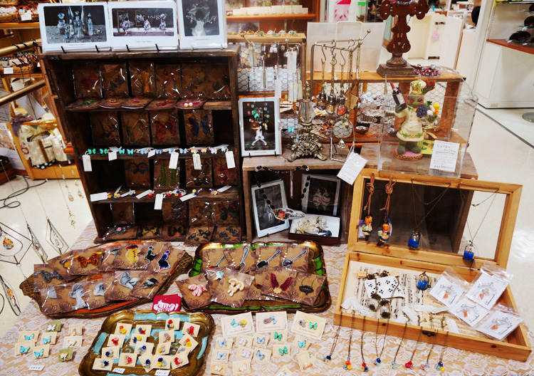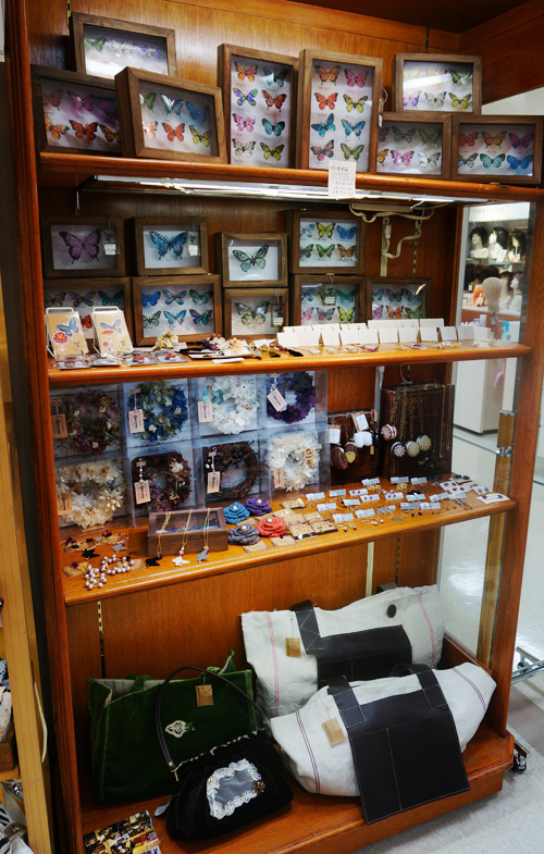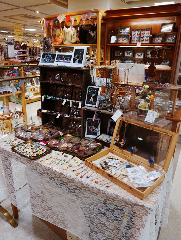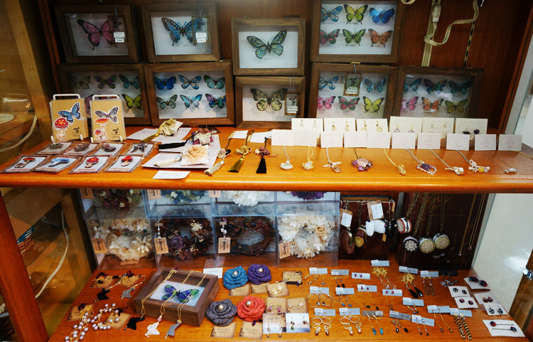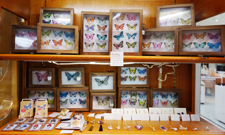 蝶の標本やアクセサリー。