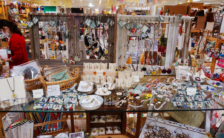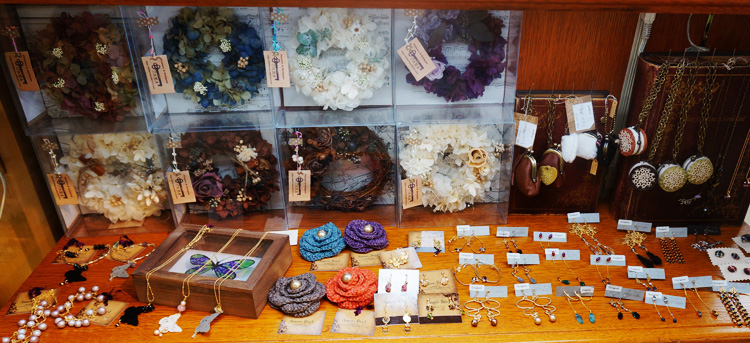 押し花のアクセサリーもたくさん並びました。