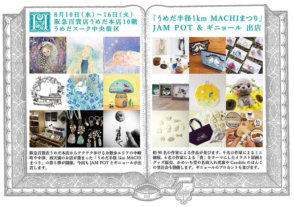 fukuda yuko(12時〜20時)、アオキカナエ(10時〜16時)、*guunin*(10時〜16時)、ユビトテ(12時〜19時)