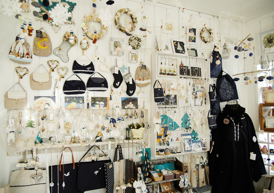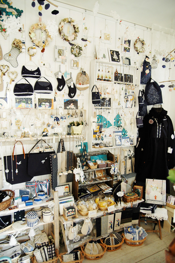 全体の展示風景です。白と紺でシックな雰囲気になりました。