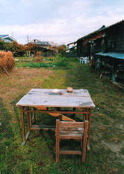 1年前にその洋裁学校の庭にある小屋にカフェ、ソーイングテーブルをオープン。