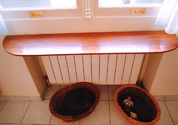 その下のカゴが猫のお家である。