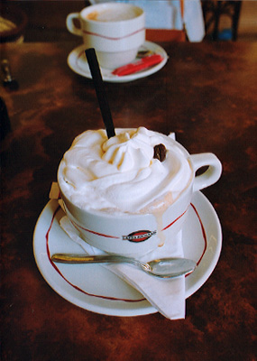 トイレも行きたくなるしで、カフェでカフェクレーム(ミルク入りコーヒー)を一杯頼む