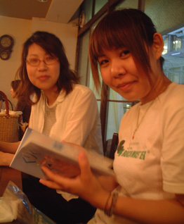 ミツバチ堂さんにて。左はミツバチレモネード(っていう名前だっけ?) 右はまゆみんとモモさん