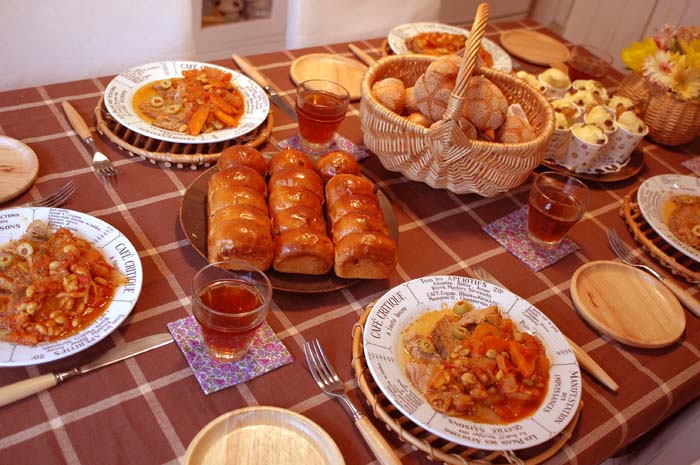 ハニーブレッドパン、カイザー、プロヴァンス風煮込み、蒸しパン、雲のミルクティー。