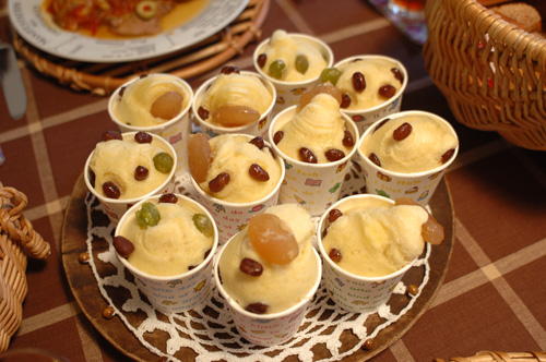 甘納豆がトッピングされた蒸しパン