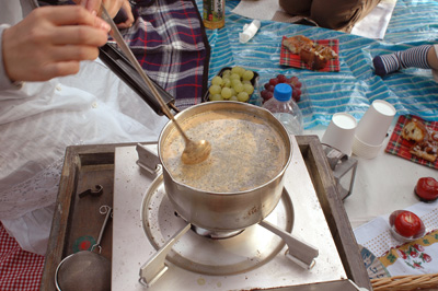 そしてランチタイムの後は、コンロでるるさんにチャイを作ってもらいました。